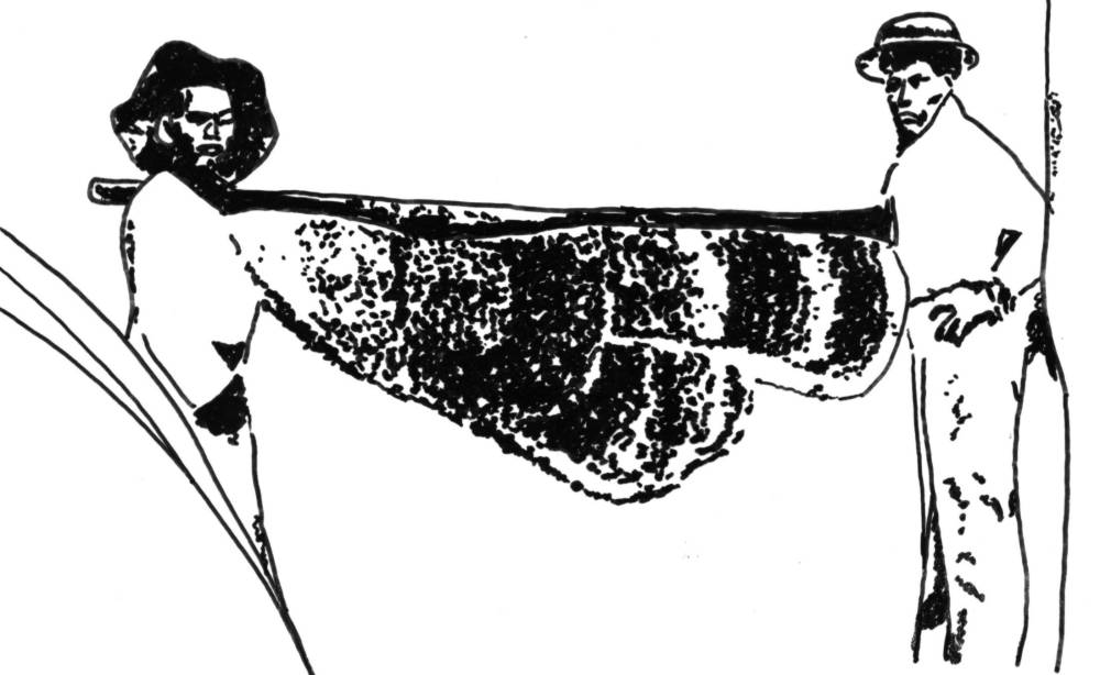 2. Soma oder die Bienenkolonie als Waffe Indras und Rudras - Tod und Heil liegen nahe beieinander. - Keith (1925:168) meint, daß es Merkmale gibt, die zeigen, daß die Somapflanze sehr mächtig ist und J. Brough (1971:359) hält es für höchstwahrscheinlich, daß man sich nach RV 9,83,5 und 9,86,40 Soma als Indras Waffe vorgestellt hatte. In der Tat, der Berauschendste führt gute Waffen (9,15,8), ist wohlbewaffnet (9,65,5), „mit guten Waffen, berauschendst, süßest“ (RV 9,108,15) und in RV 1,33,13 wird die Keule Indras als scharfer Bulle bezeichnet. Mit der mächtigen Honigwabe der Riesenbiene und ihrer nach Zehntausenden zählenden „lanzenkundigen“ Bevölkerung von Hornissengröße sieht es so aus: Im Gegensatz zum nur rutenförmigen Ephedra-Zweig oder zum mollig-weichen Stiel des Fliegenpilzes ist eine zum Angriff gereizte Kolonie eine Waffe mit bekanntermaßen Furcht einflößenden Dimensionen. Menschen, Wasserbüffel und Elefanten erscheinen in der Literatur als ihre Opfer. A. dorsata wird als „the most ferocious stinging insect in the world“ bezeichnet (Morse & Laigo 1969:22) und drei Stiche von ihr sollen einem Kobrabiß entsprechen. Die Wabe am vielleicht keulenförmig vorgestellten Ast (Abb. 30) oder am Felsen (Abb. 14,16), verbunden mit blitzartigen Attacken der Bienen, sind in meinen Augen ein treffendes Bild für Indras, bzw. Rudras Keule.
